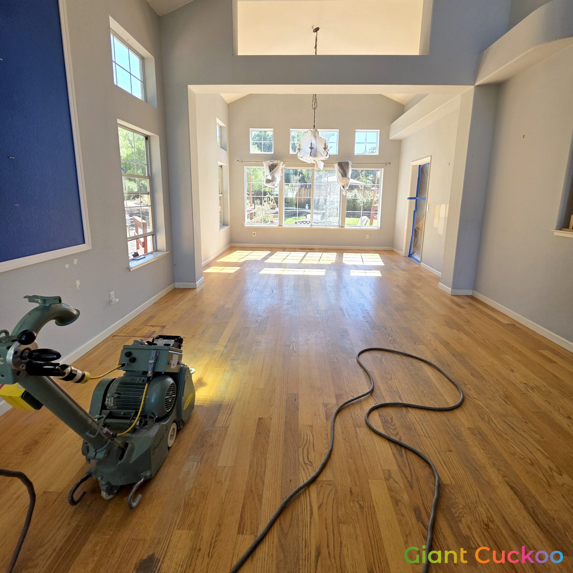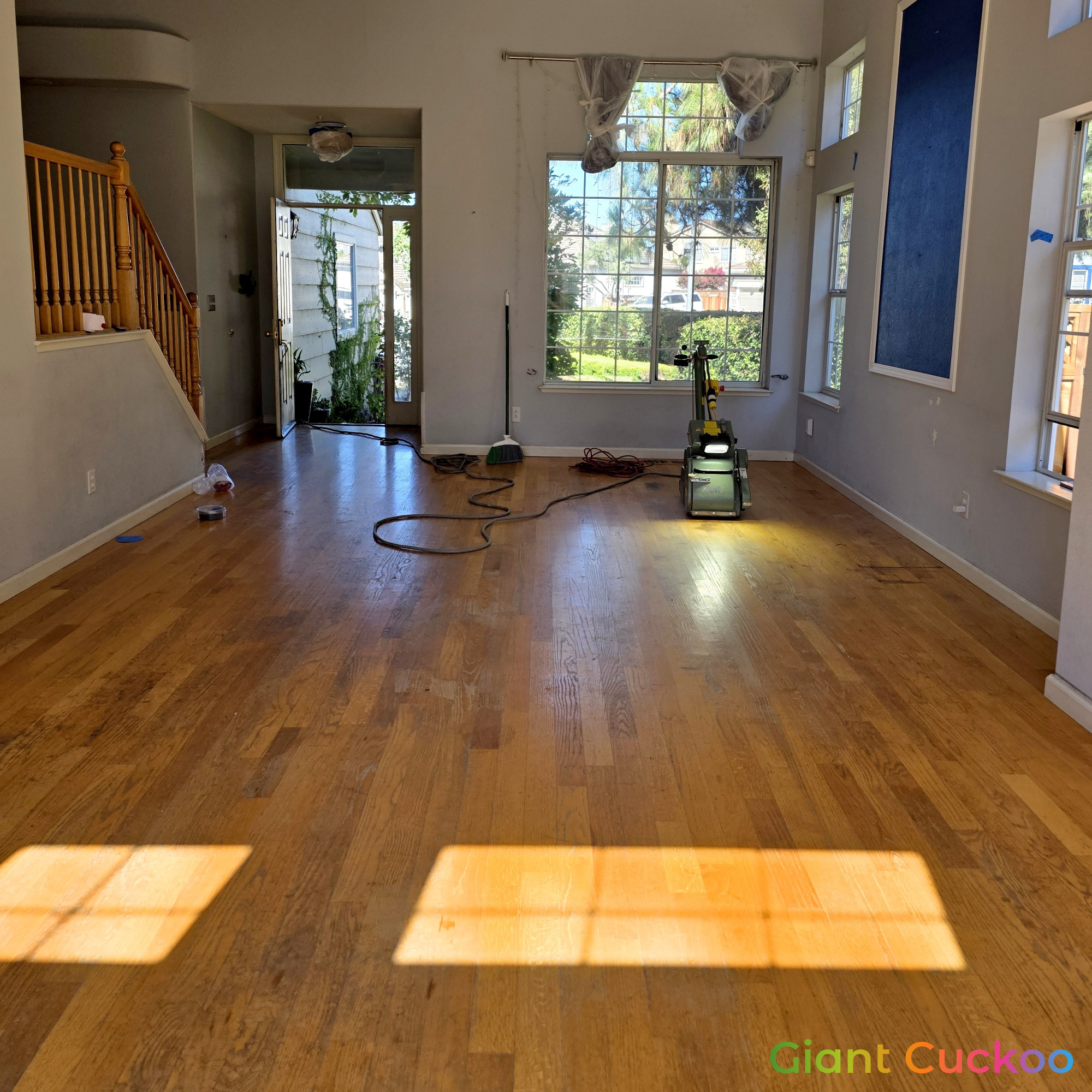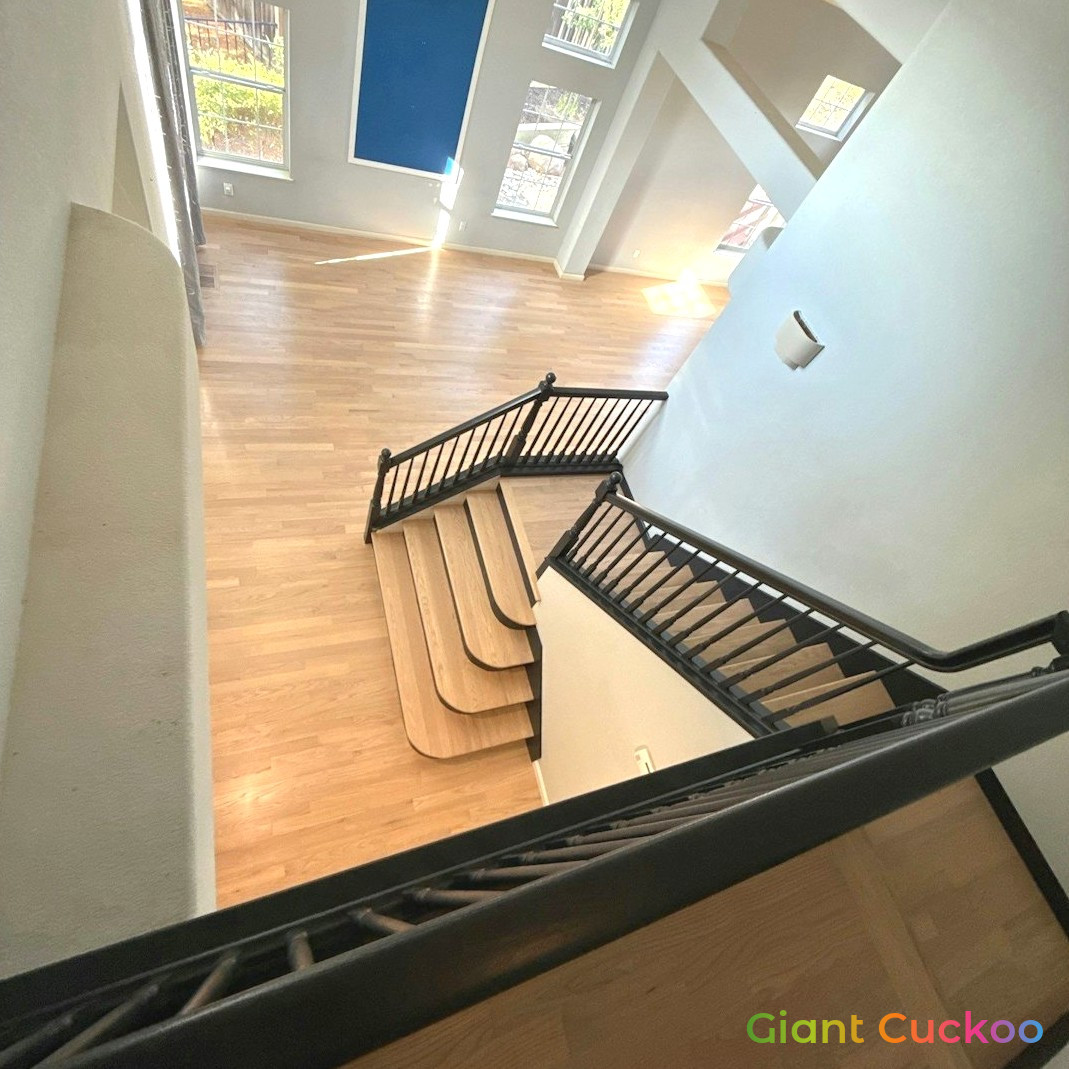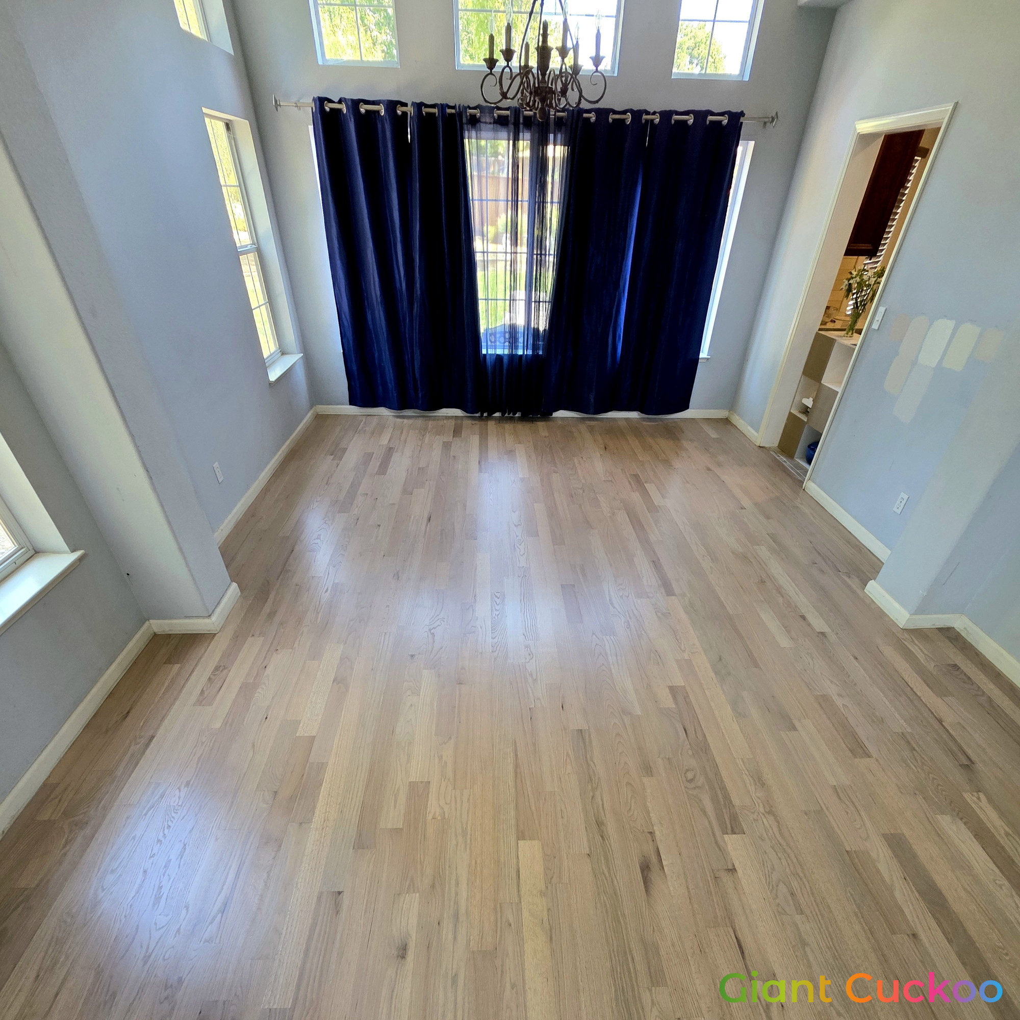 Living room floor stained for a rich, refreshed look. High-quality finish by Parrotones.