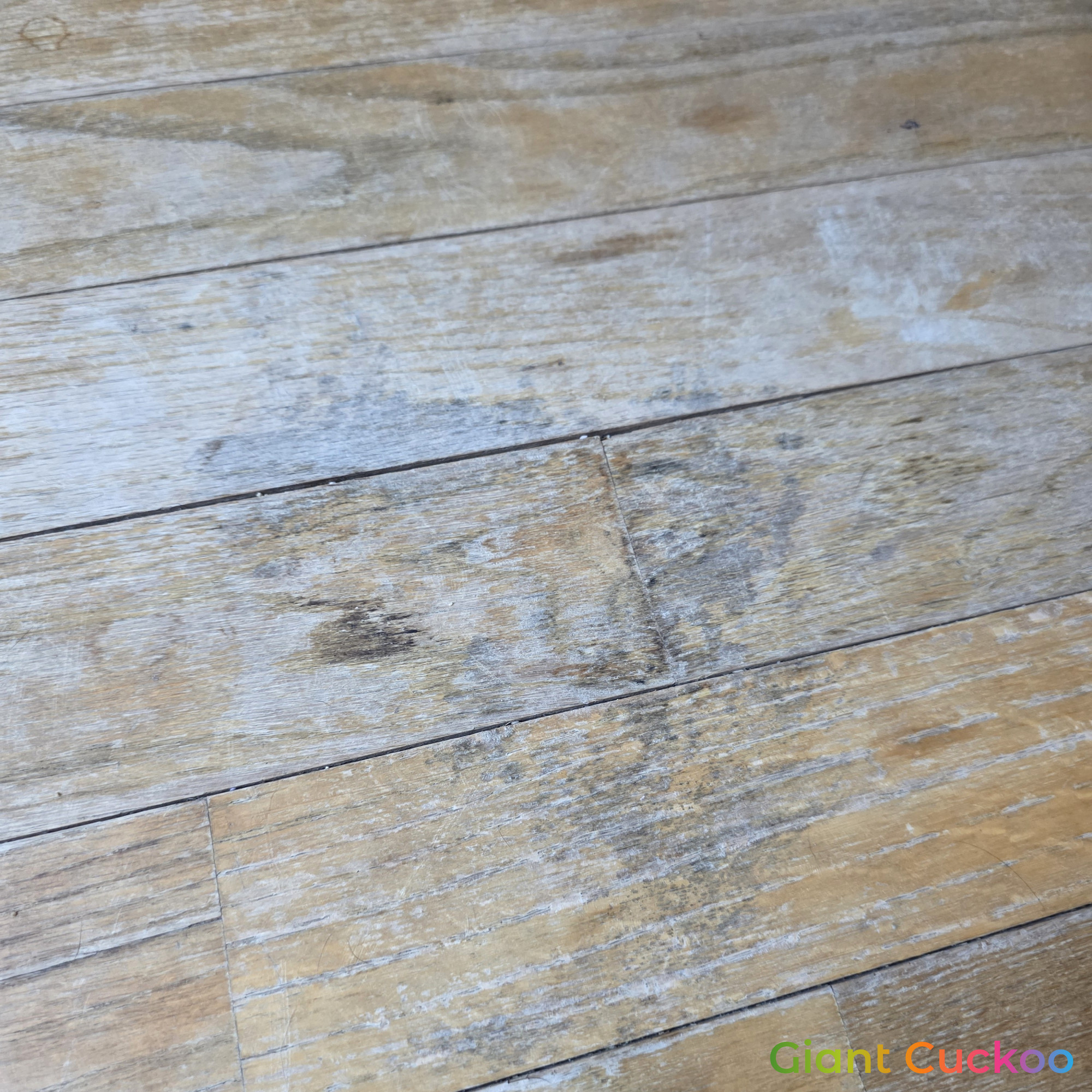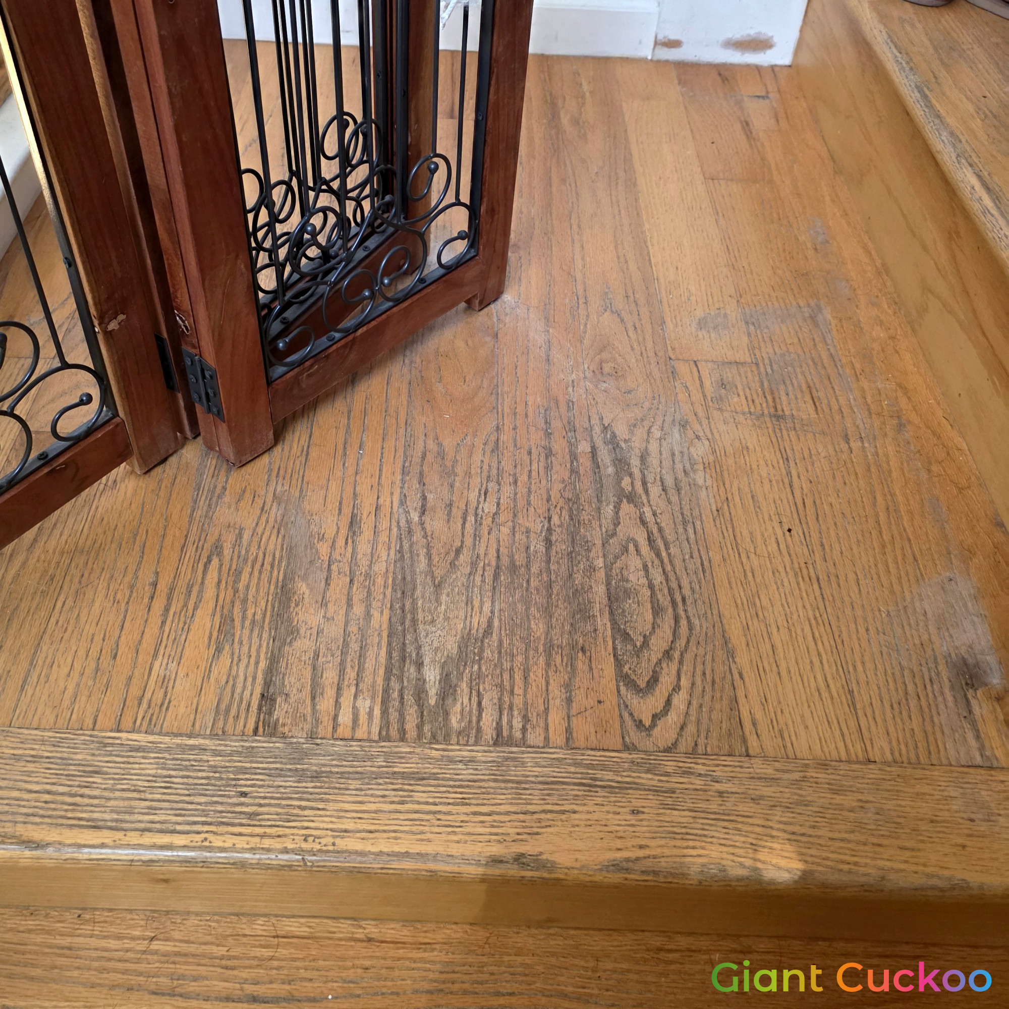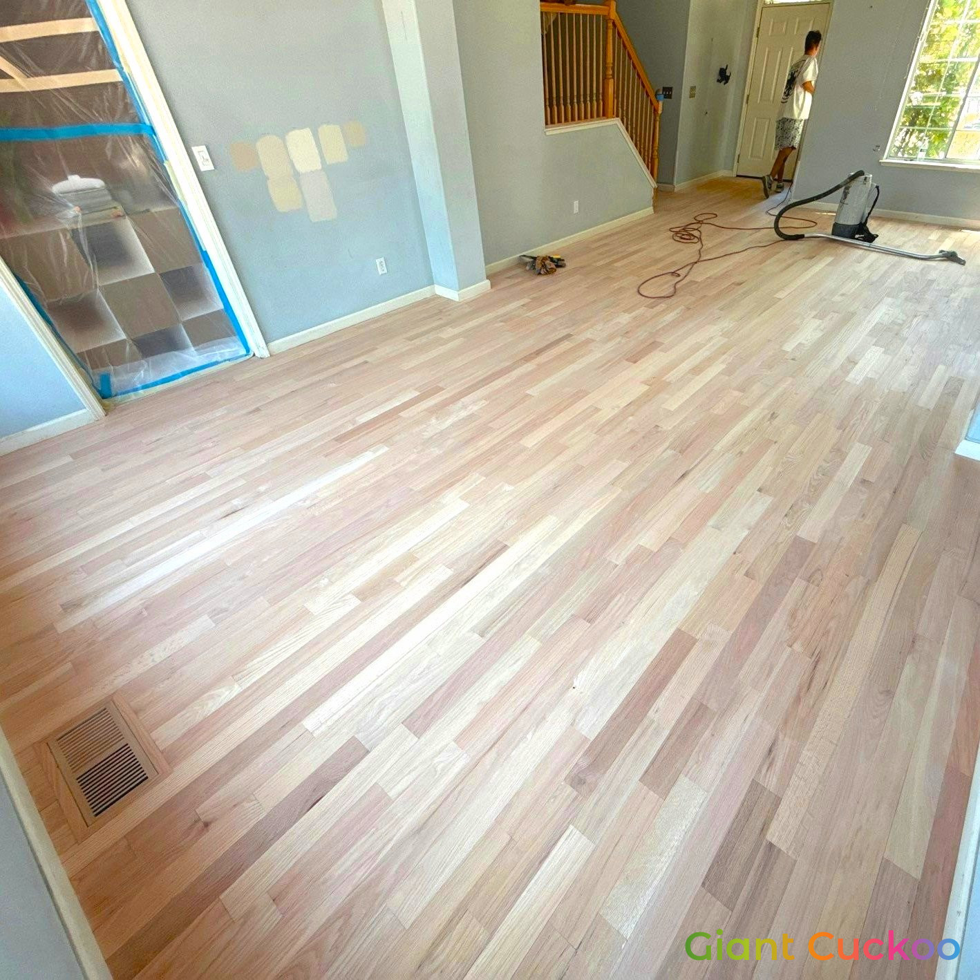Living room floor stained for a rich, refreshed look. High-quality finish by Parrotones.