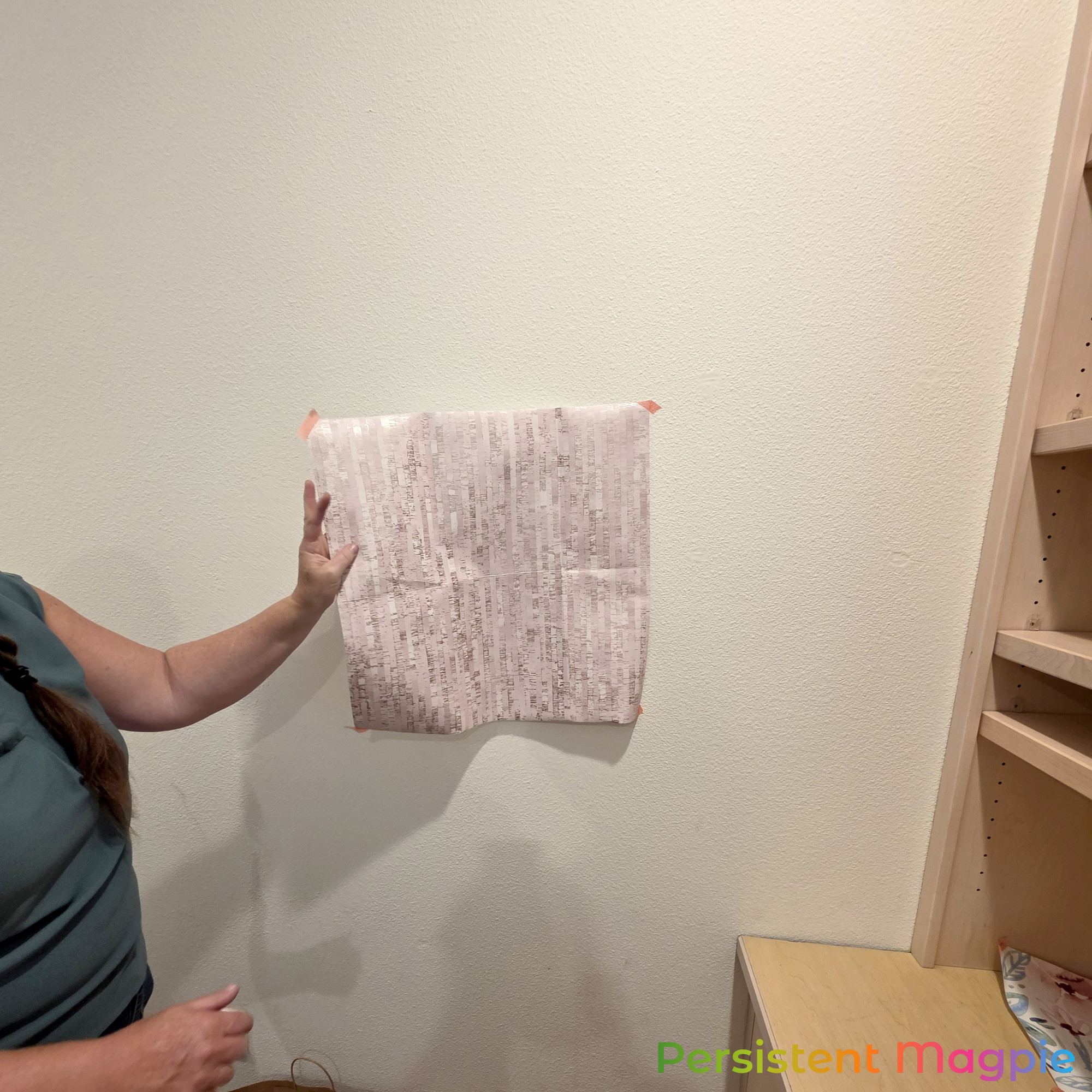 Installation of a pink wallpaper accent wall for a stylish, eye-catching feature. Beautifully finished by Parrotones.